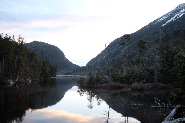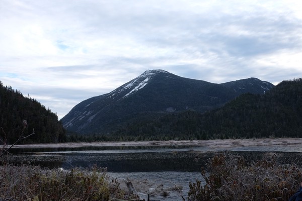 The “trail” was a snaking swamp of rocks and mud, 6 miles to the first campsites along the shores of Lake Colden. I am not sure what’s considered a normal hiking pace, but Mike assured me that we made good time in those first few hours. We eventually reached an unoccupied lean-to (a three walled shelter for hikers) where we left our heavy packs and camping supplies. Our next stop: the snow covered peaks seen on our drive in.